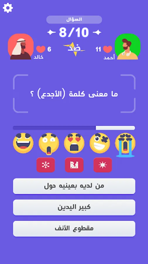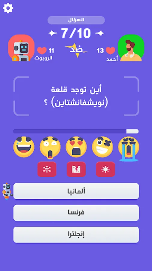 Ten questions are shown for each challenge round, and each question contains three possible answers. Competition takes place between players, and whoever can answer the question correctly and quickly will be able to move on to the next question and earn points.