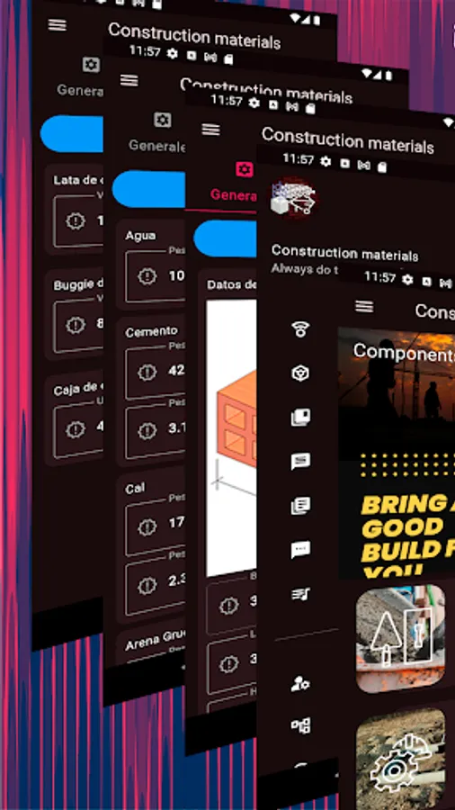 Each section, course or blog, has each section in which you can enjoy while you calculate the construction materials, accompanied by music available in the application.