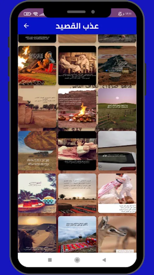 The Azeb Al Qaseed application provides you with many poems in Bedouin poetry written on pictures. You can share them via social media, Twitter, Snapchat, Instagram, Facebook, and all social media platforms.