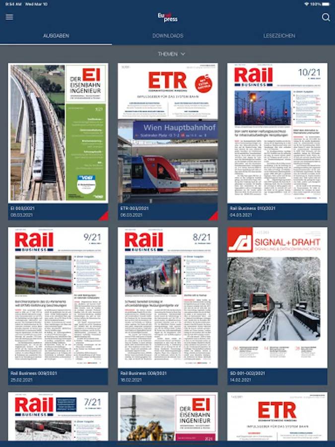 Rail Business, ETR Railway Technical Review, EI The railway engineer, signal + wire and the job market indicators sunrise industry train. In addition, other special editions and additional information about the railway market.