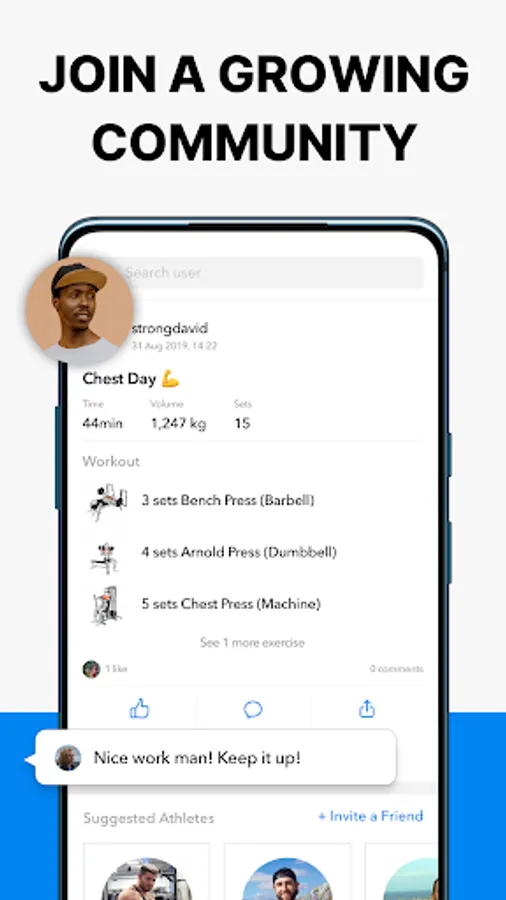 Whether you’re doing heavy strength training at the gym or home workouts, trying to improve your fitness or to get strong, join Hevy workout log and be a part of the community!