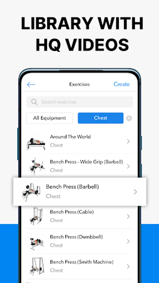 • Carefully follow proper form with +200 exercise videos such as Bench Press, Squat and Deadlift