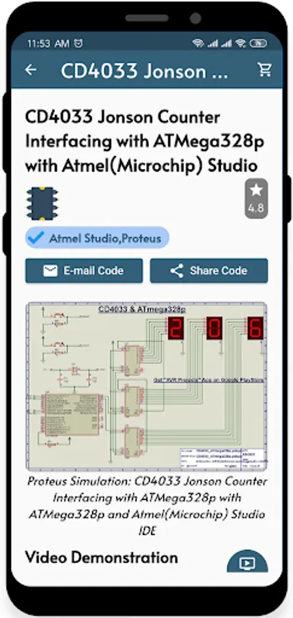 If you are an electronic/computer/ engineering student or hobbyist in Embedded Systems and firmware design, you should use this app. This mobile app, "AVR Projects", brings stunning projects and example codes for you. Instead of using libraries which were developed by other engineers and developers, all projects in this app are based on the registers which can only be found in the datasheet of the ATmega328p. Additionally, you will also get proteus simulation files for every single project in this mobile app.