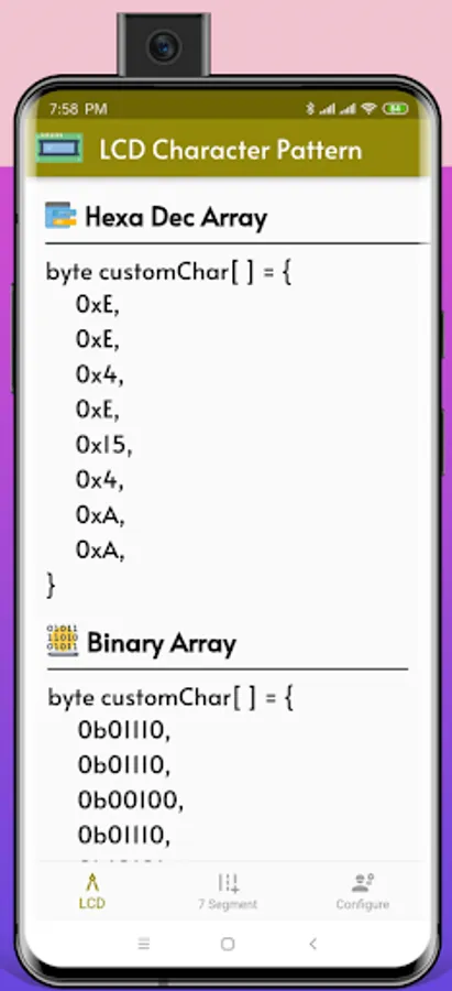 An app to generate custom character for LCD Display and 7 segment display (Common Cathode and Common Anode)