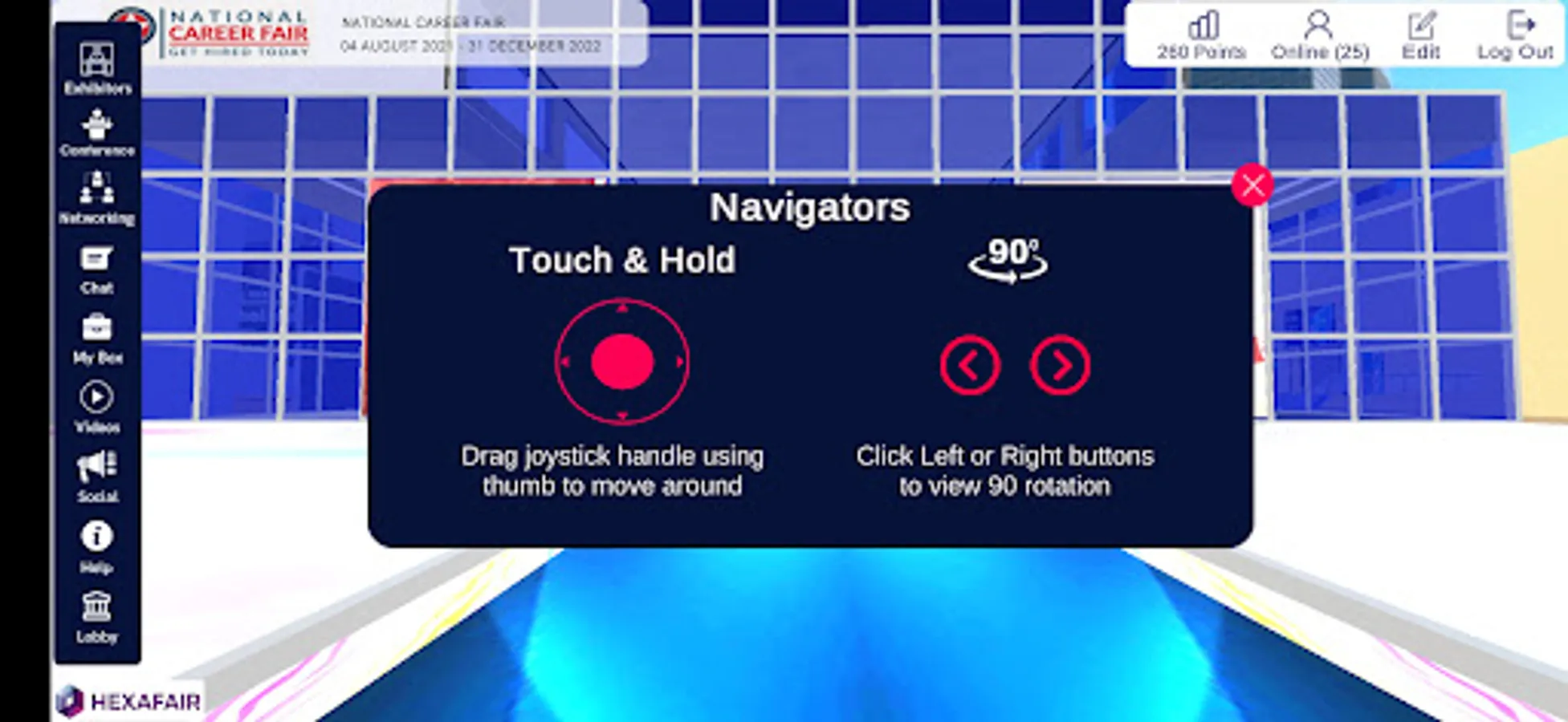 With this application you can access VR environments created, hosted and published using the HexaFair platform. To access the environment a registration on its event web site is required. If you directly register on this current app, it takes you to demo virtual event setup.