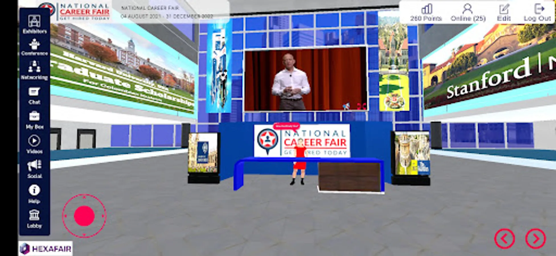 + Hall, Booths (stalls), Auditorium are in 3D (Virtual Reality) environment