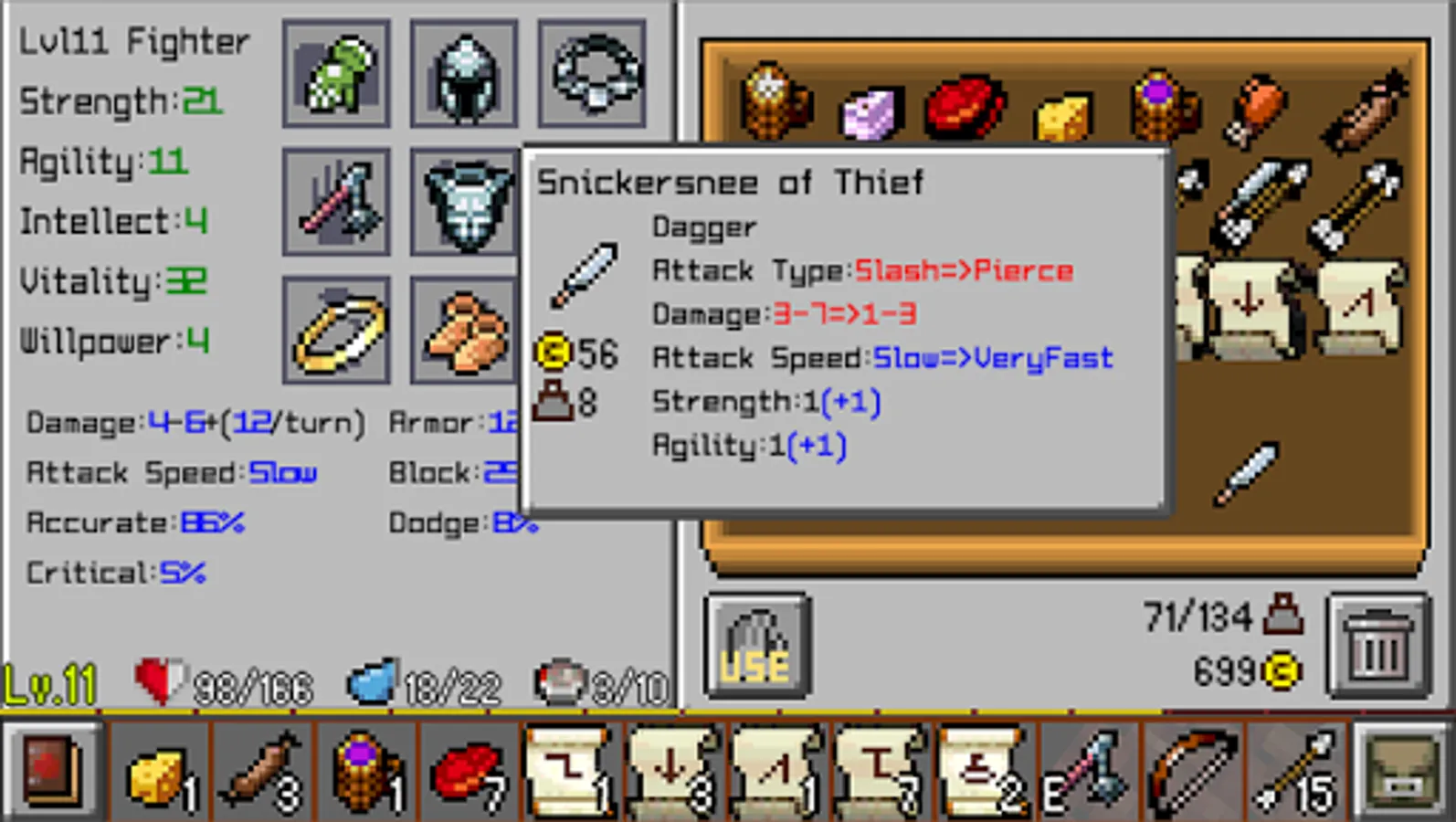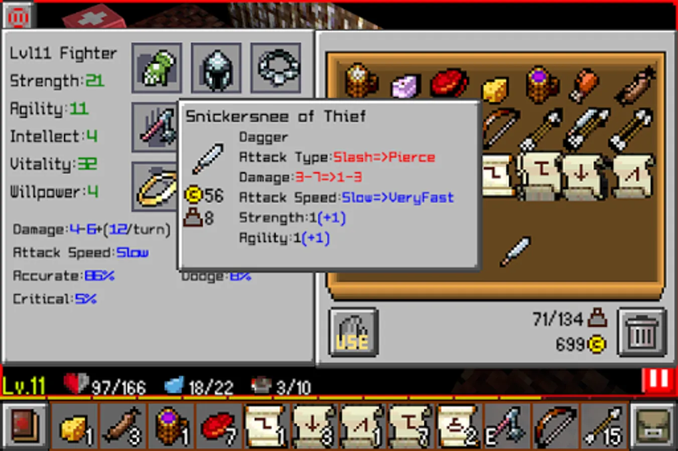 Choose a class among many different classes and enter an unpredictable dungeon. Slain monsters, find treasure chests and get items and skills that will make you stronger. But don't forget to eat. It is a bit strange but there are stores inside the dungeons. So it would be wise for you to collect gold and loots.