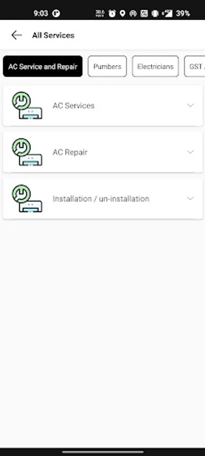 Repairs: Electricians, Plumbers, Carpenters, AC repair, Washing Machine Repair, Refrigerator Repair, RO or Water Purifier Repair, Microwave Repair, Geyser Repair, Chimney and Hob Repair
