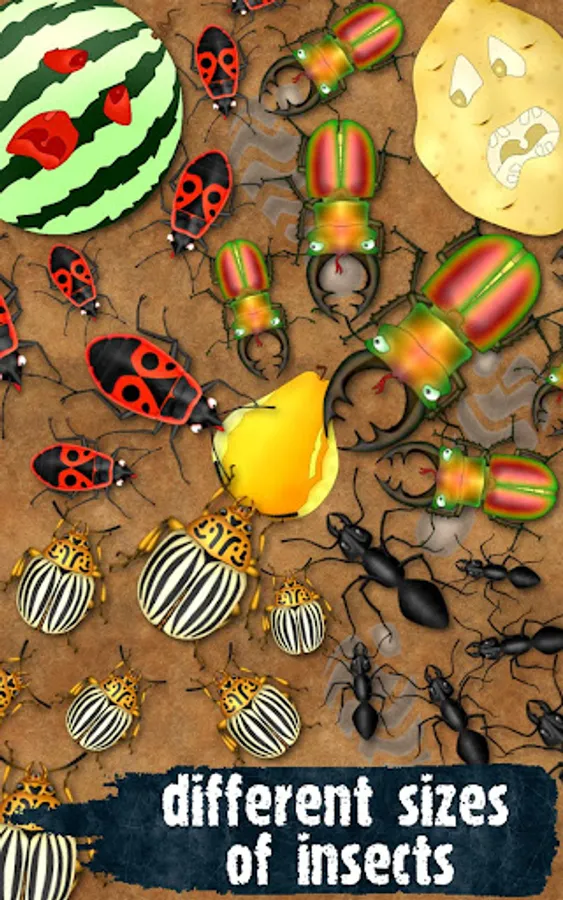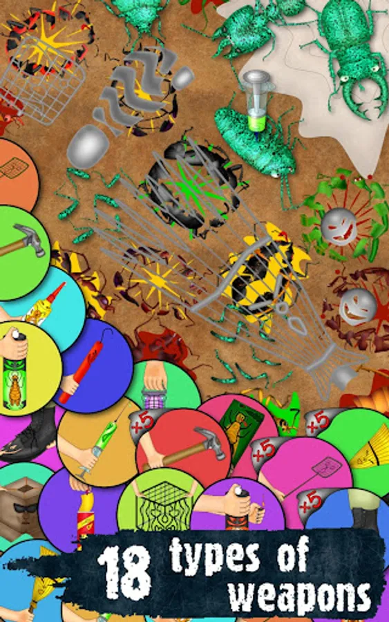 Crush insects on screen: kill bugs, beat cockroaches, destroy beetles! Smash ant to protect food. Complete all levels in cockroach games (insect smasher, ant crusher) and get the maximum score. Become the best player in the ranking!