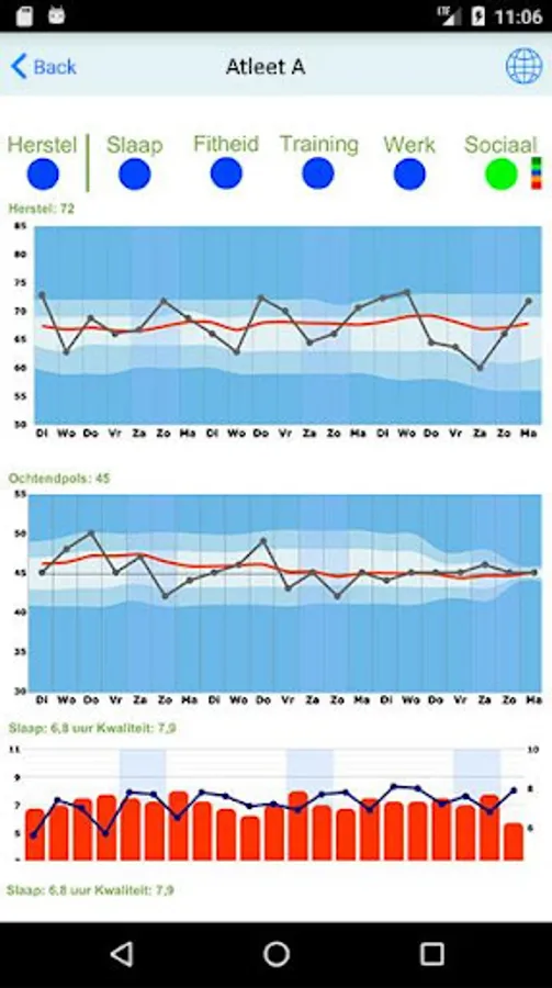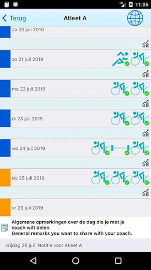 Zooming to one athlete gives you all the comments for training, injury, nutrition and personal notes addressed to you.