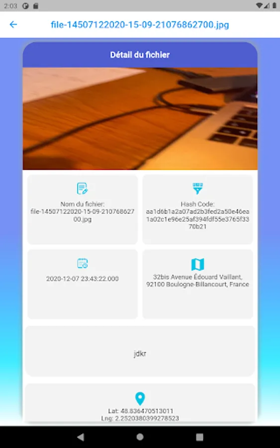 CEERTIF allows you to remotely take photographs, videos, scans, documents, geolocated, timestamped and blockchains deposited with a partner Bailiff.