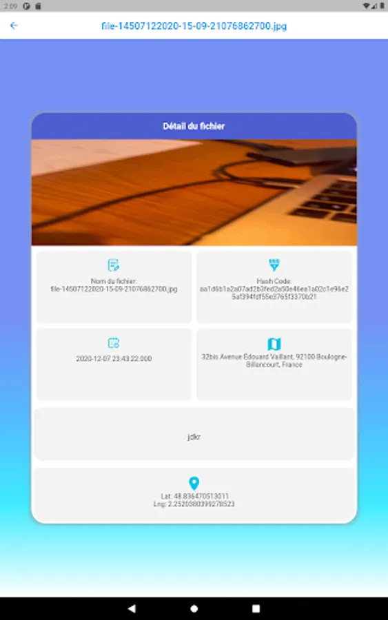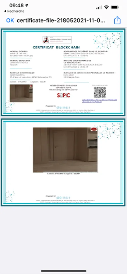 Retrieve your blockchain certificates from the app. You can ask a Bailiff at any time in one click for a report which allows you to give a certain date to your shots or your documents kept for 25 years by the Study.