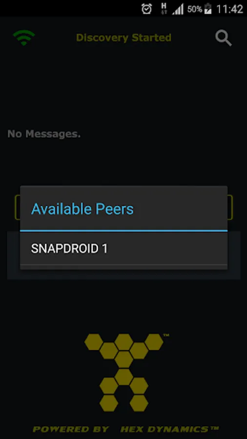 2) Then tap the Search icon (top-right) to find other devices and to indicate that you are available. NB: therefore both android devices must be in search/discover mode within the same time period.