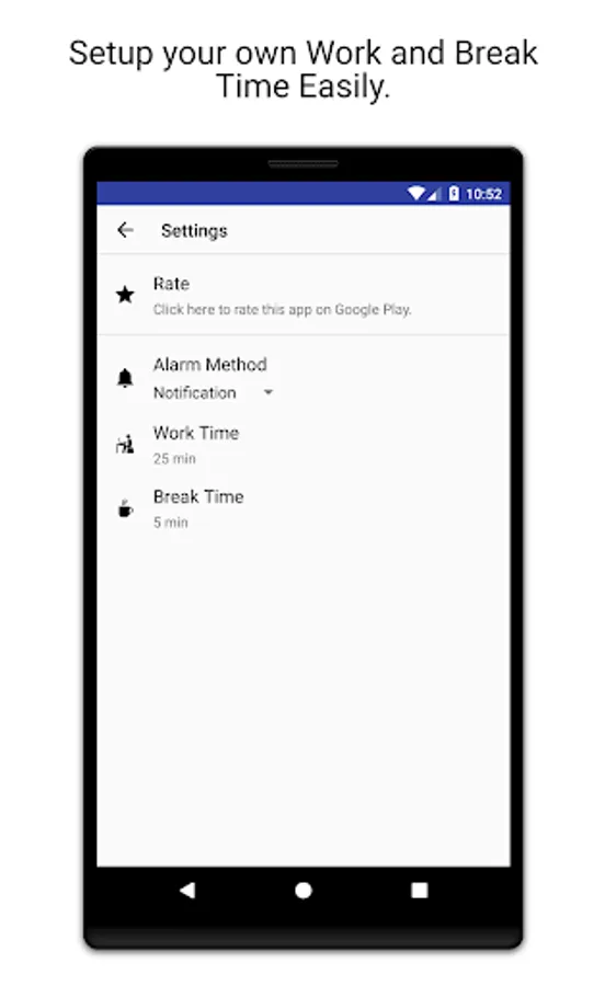 With the "Take a Break" app, you can set a range for your working time. When it is time for a break, you will get an alarm and a notification.