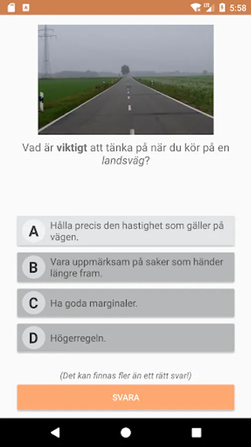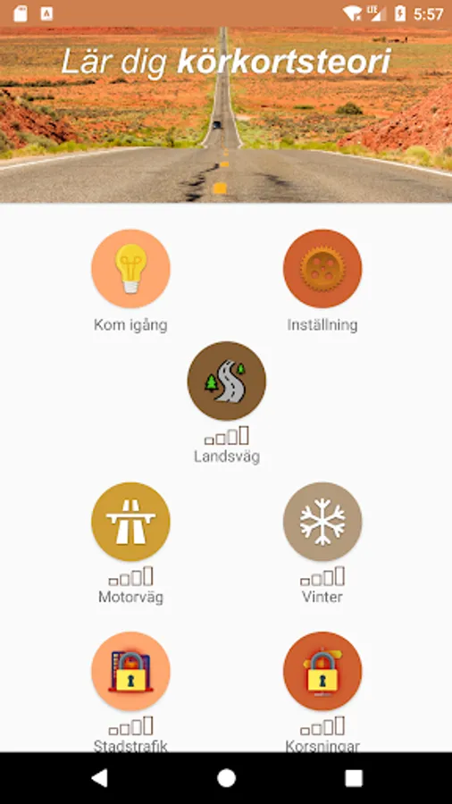 This app helps you learn and remember knowledge of driving theory that traffic, how humans behave, vehicle control, the environment and economics in a fun and entertaining way!