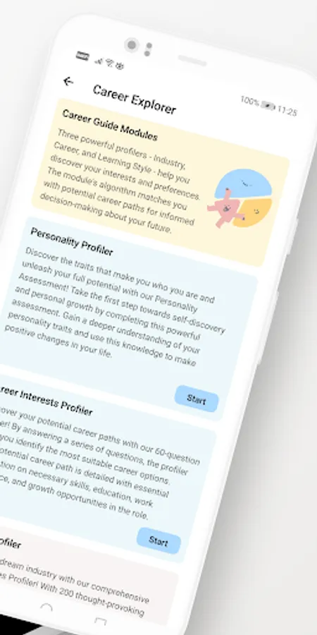 Career Explore Module: Navigate your career path with our AI-powered profilers. Discover job streams perfectly matched to your unique personality, learning style, and aspirations.