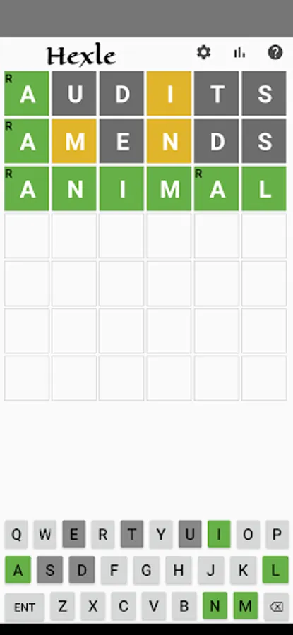 Unique feature - the 'R' at the top-left corner of a letter indicates that the letter is present more than once in the word!
