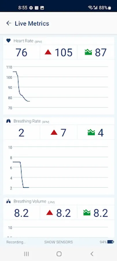 Whether you’re training or just want to check on your vitals during the day, the Hexoskin App allows to visualize metrics such as ECG, Heart Rate, Breathing Rate, Acceleration, Heart Rate Variability, Maximum Heart Rate, Resting Heart Rate, Heart Rate Recovery, Tidal Volume, and VO2 max. The Hexoskin App also provides contextual activity tracking, annotation features, and reporting with a range of metrics including movement intensity, steps, cadence, distance, energy, and calories burned. Hexoskin also offers advanced sleep reports to better understand your sleep quality and optimize your rest.