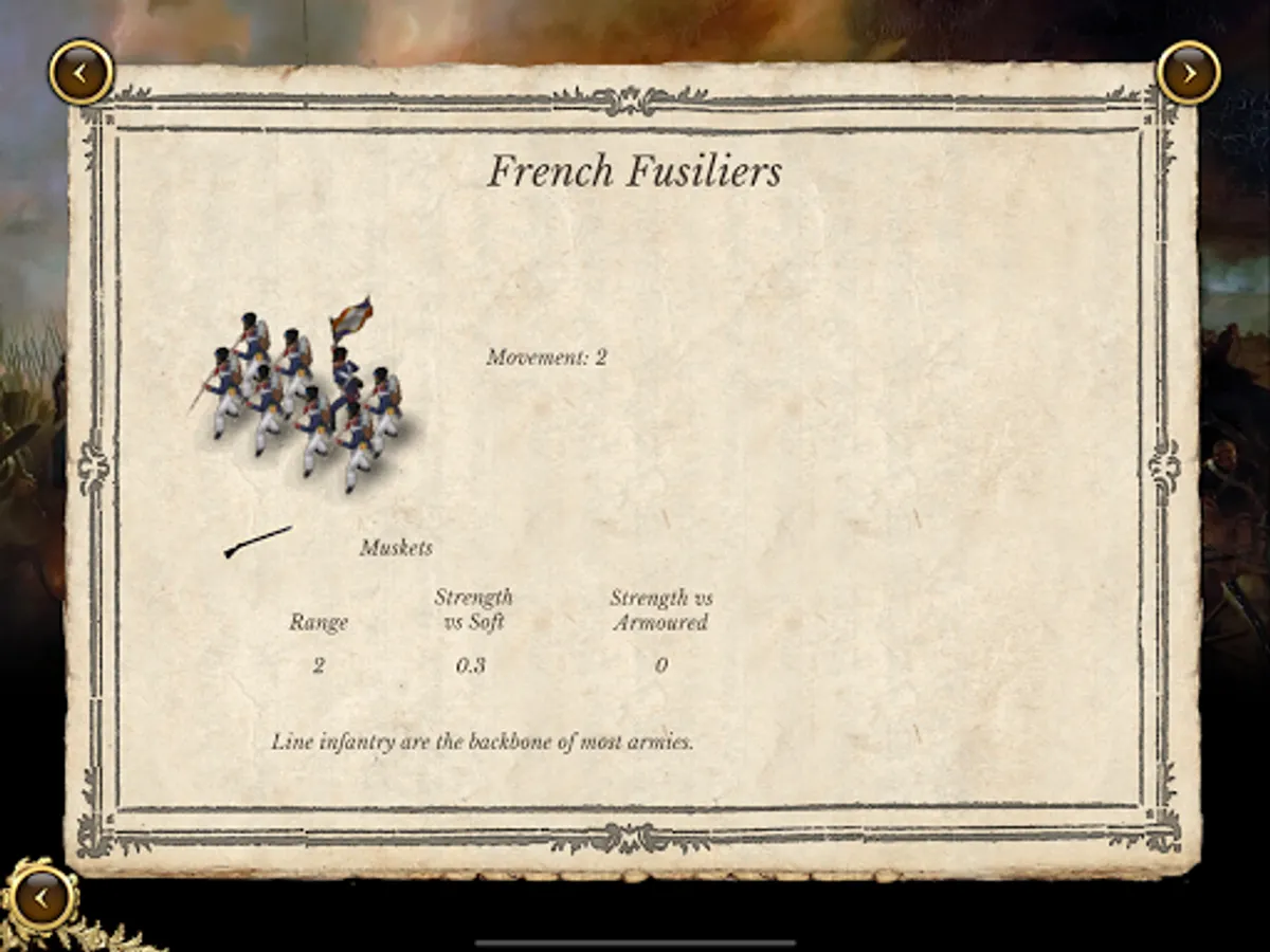● Four classes of infantry – Raw, Average, Veteran and Elite