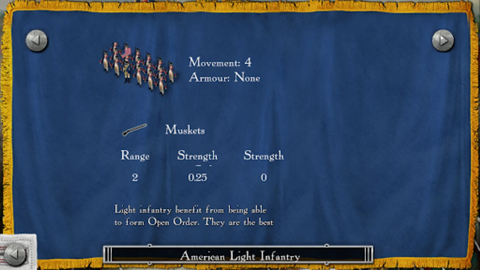 ● 5 types of infantry formation - Line, Column, Open Order, Square, Unformed.