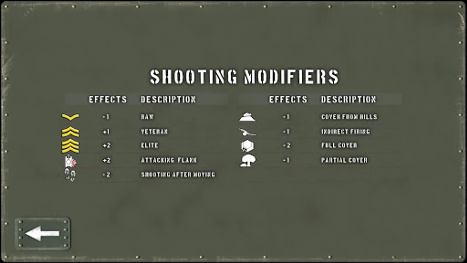 - Six common units; Flamethrower, HMG, Infantry, Mechanized Infantry, Mortar, Supply Dump, Truck.