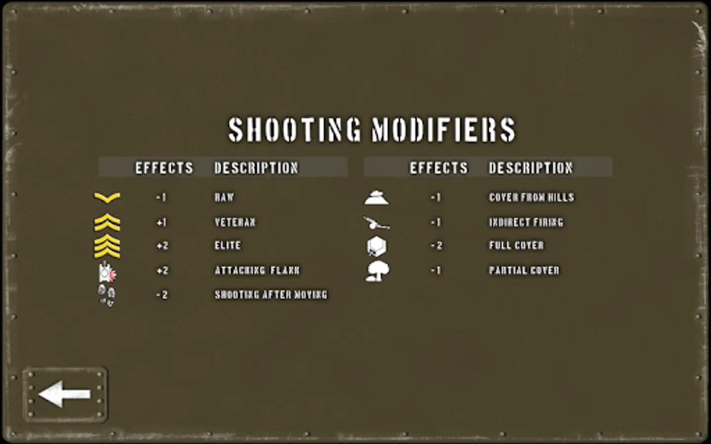 ● Other Game Features; detailed combat analysis, flank attacks, strategic movement, indirect fire, mounting and dismounting from vehicles, multi-level hills, minesweepers, bridge-laying.