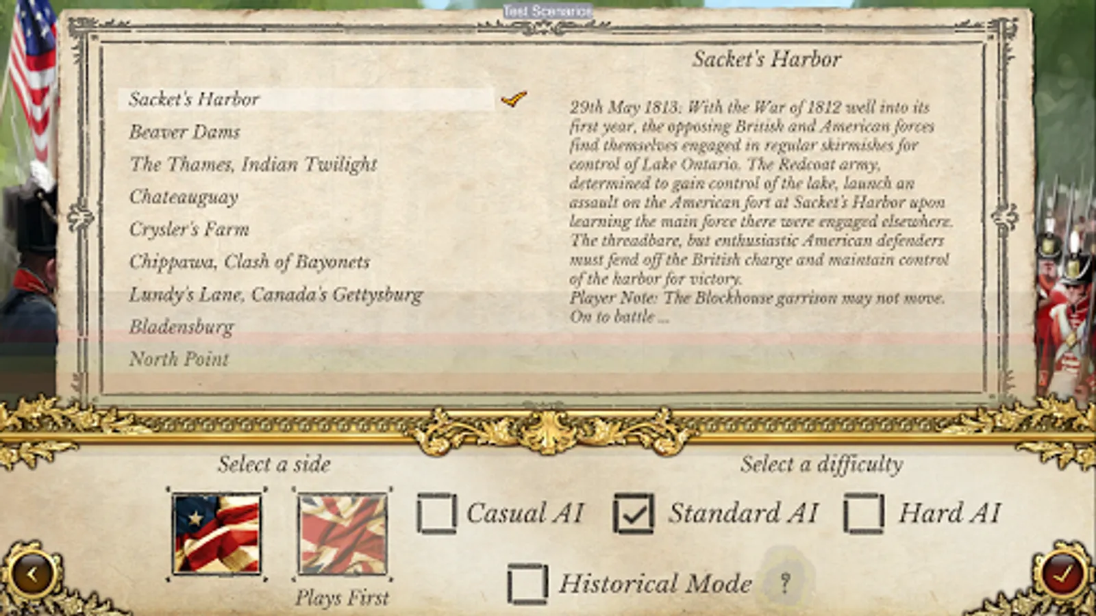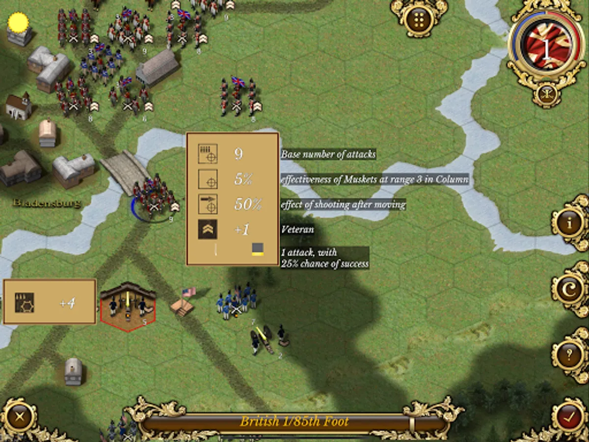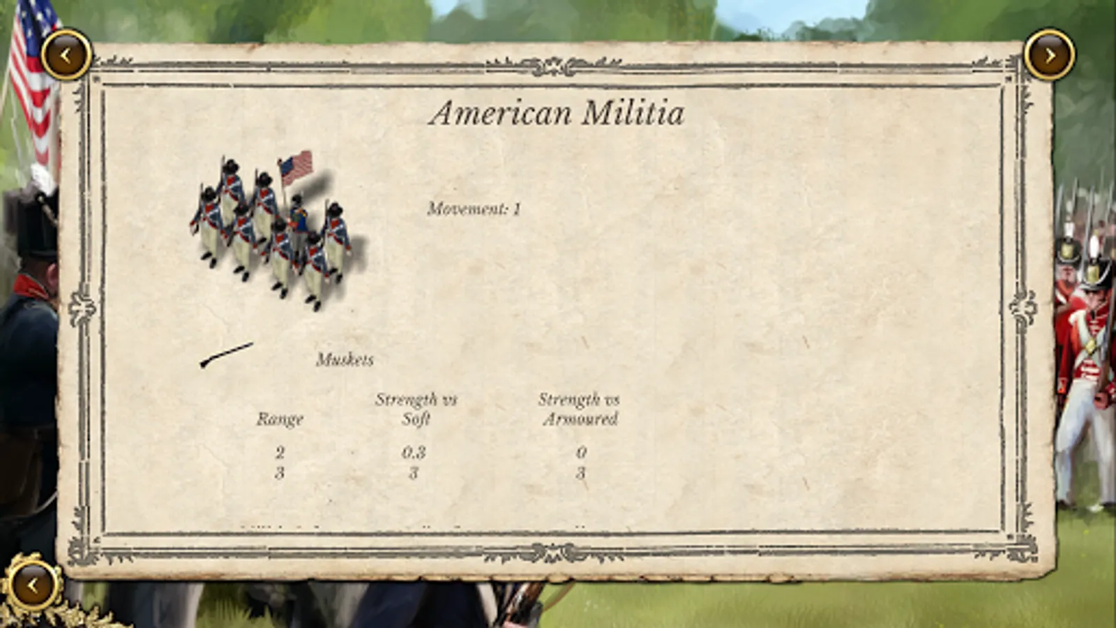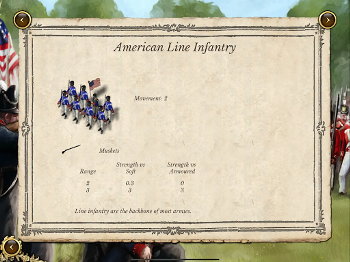 ● 17 different troop classes including infantry (line, militia and marines), light infantry (and native American warbands), cavalry and artillery (6pdr, 9pdr, 12pdr, 18pdr, 24pdr and the fearsome 32pdr) and introducing British rocket units.