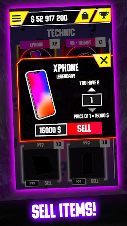 After the first opening box, you will be able to sell items. The game is made in such a way that you not only collect awards, but also can sell duplicate items. After selling surplus items, you can buy cases to get even more rewards.