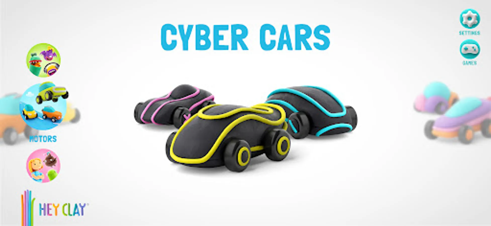 For best-looking creations, use the original HEY CLAY® air-dry clay: it’s super light, non-sticky, and has bright colors. But the best part is that it allows you to create your own toys: model your favorite characters, wait for the clay to harden, and play with the figures as with real toys! The clay sets are available for purchase through the App.