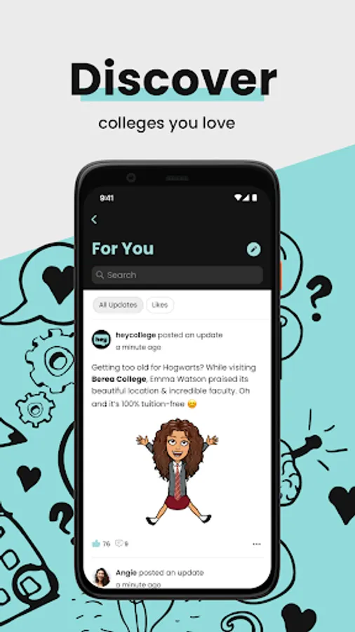 Connect with friends and mentors. Chat, post, and comment. Your feed is personalized based on the people and admissions topics that you follow and like.