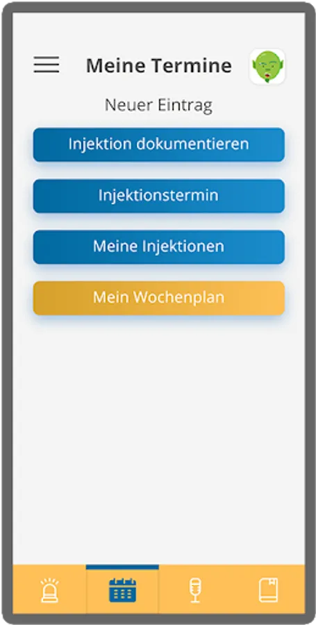 • Calendar, e.g. to document medication intake, injection appointments and also private appointments