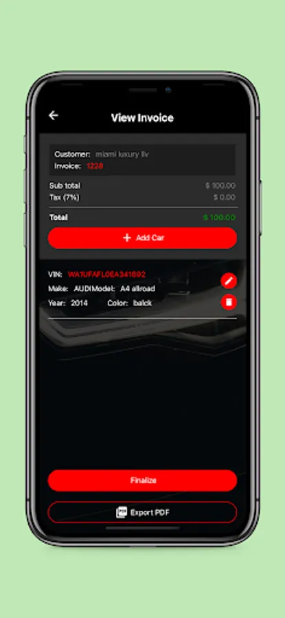 You can create invoices, manage your customers, add vehicles by simply scanning the VIN Number bar code, manage the approval work flow with your customers.
