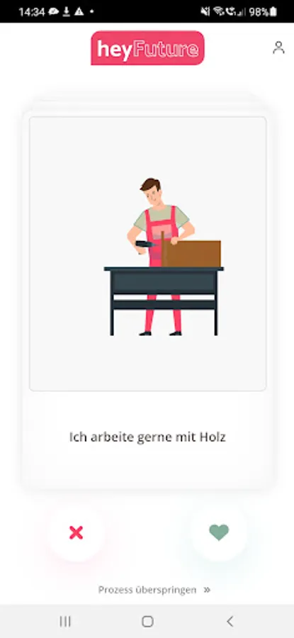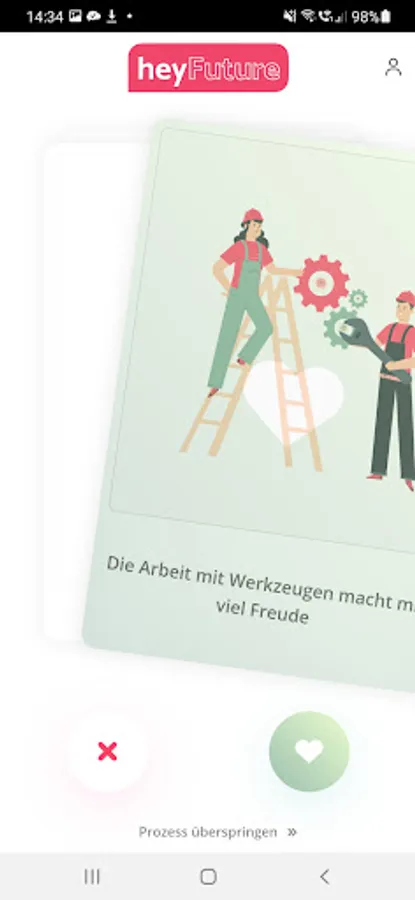 You still have no idea what you want to become? No problem, the app's algorithm analyzes your swiping behavior to give you a realistic suggestion...and all this without accessing your personal data.