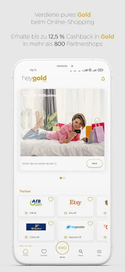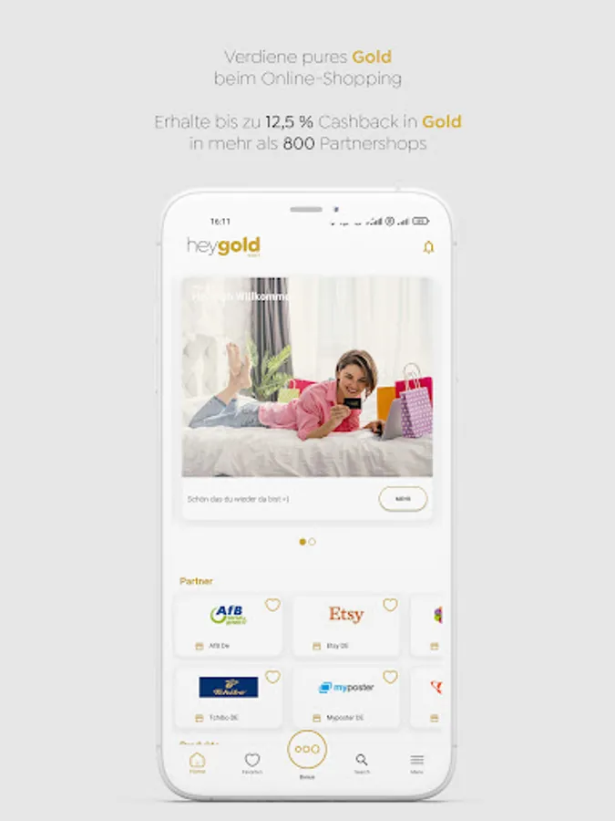 In the heygold bonus world you can receive pure gold as cashback in more than 900 partner shops. Discover exciting cashback promotions and exclusive offers from well-known brands such as Samsung, Etsy, Disney, Christ, Depot and other partners.