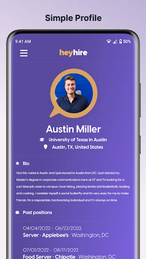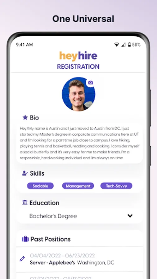 Share what you want to about yourself! We give you the freedom to draw the picture of who you are to make a lasting impression on the employers you’re most interested in!