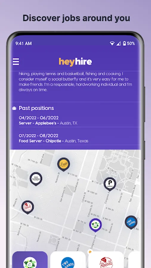 2. Open your map to find the businesses that are hiring around you and apply in 2 taps!