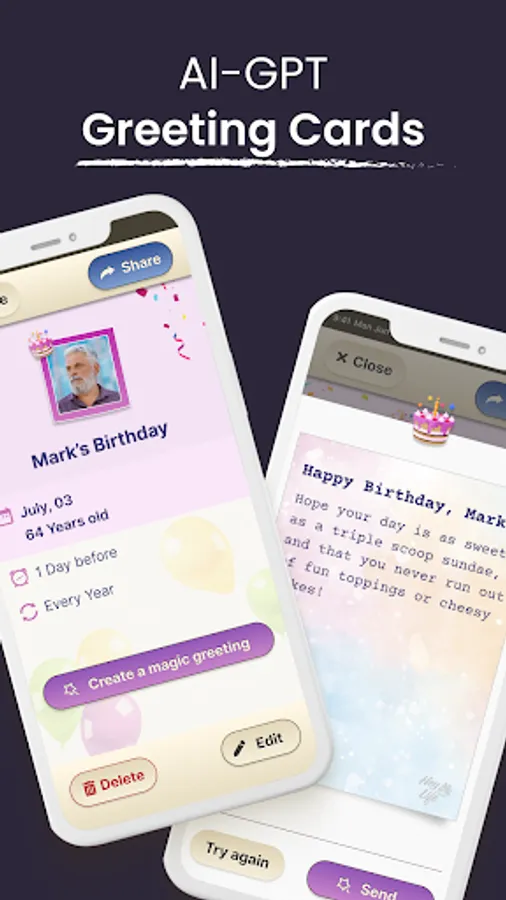 With our innovative Chat GPT, HeyLife revolutionizes the way you interact with your digital planner. Our intelligent chat system understands your needs, preferences, and unique requirements, allowing you to effortlessly generate customized greeting cards. You can create a birthday greeting card in less than 2 seconds using AI (ChatGPT) and send it to your family and friends.