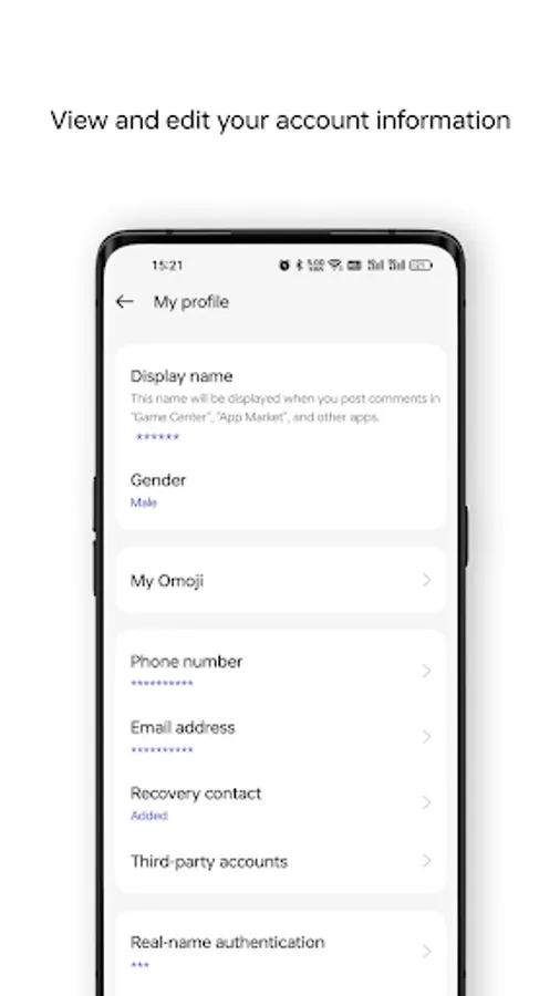 Realme Account lets you manage your account information all in one place, including phone number, email, password, and more.