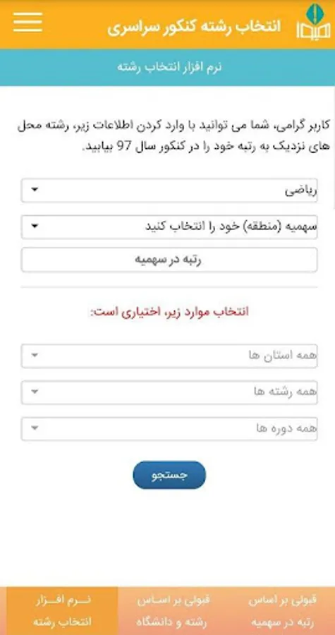 In the admission section, according to the field and university, volunteers from the national gynecological college can answer the question "Which degree are accepted in the university and their field?" Also, volunteers from the National Cancer Institute 99 can use this section's information to target national checklist planning.