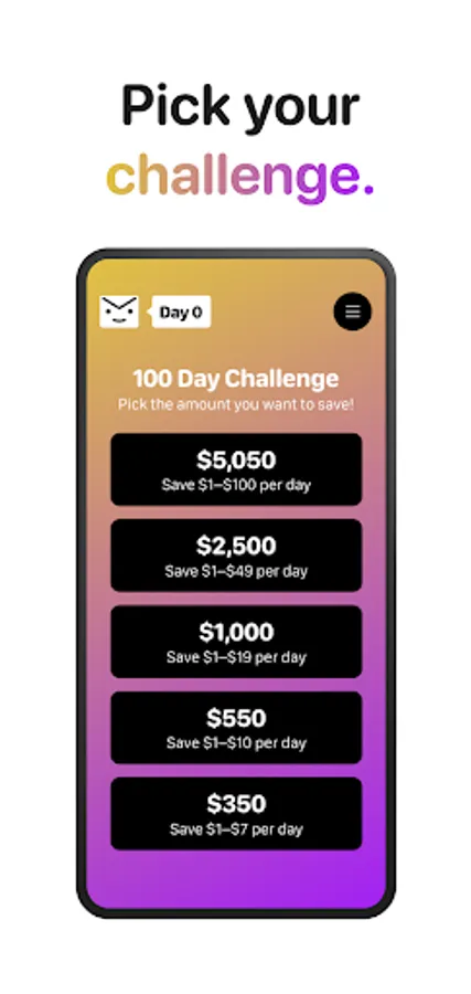 Envie now has five savings Challenge levels: $350, $550, $1000, $2500, and $5050. Each Challenge level has its own threshold for your daily savings amount: