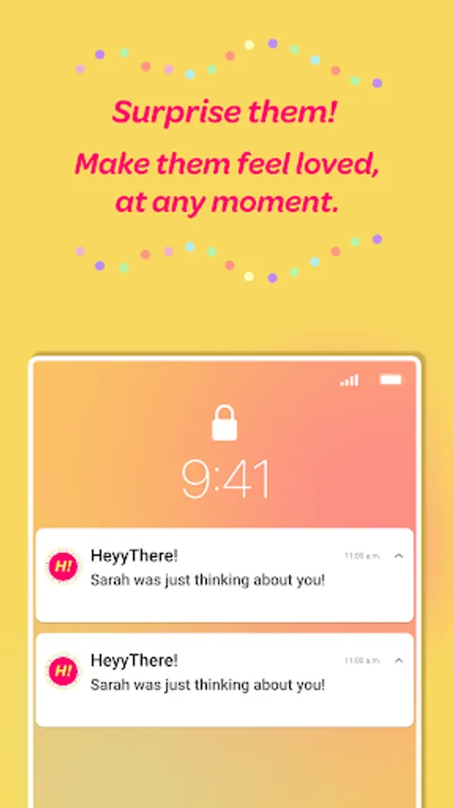 Everytime you think of them, send a Heyy: they will instantly receive a push notification from you! It’s like sending a ray of sunshine into their day. Surprise them! They will feel loved!