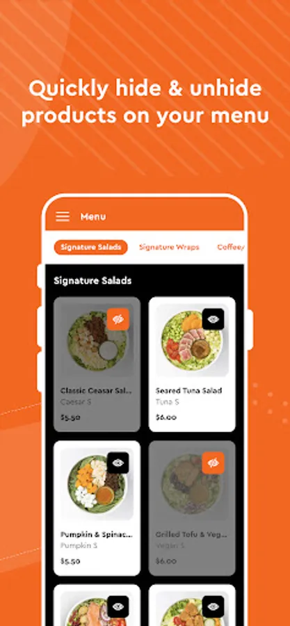 • Quickly view, enable and disable products on your menu