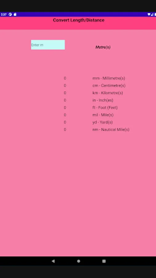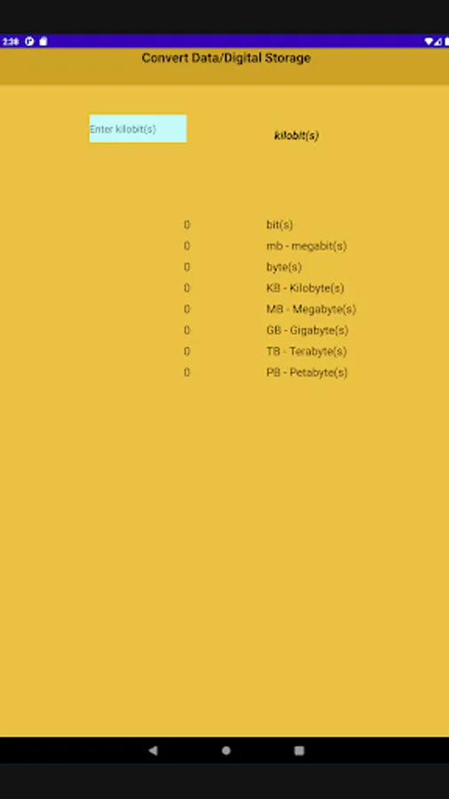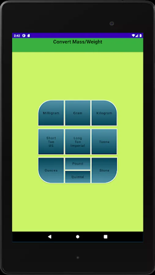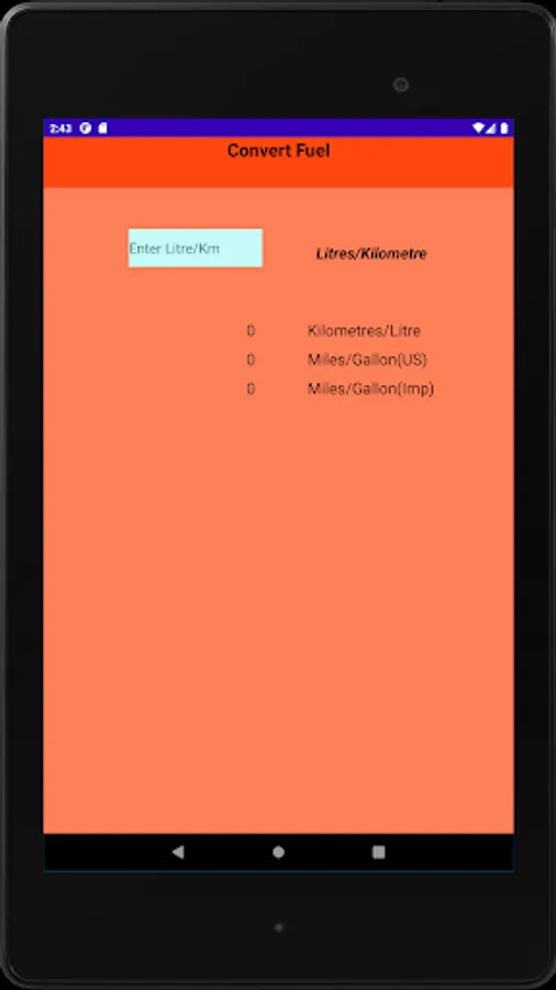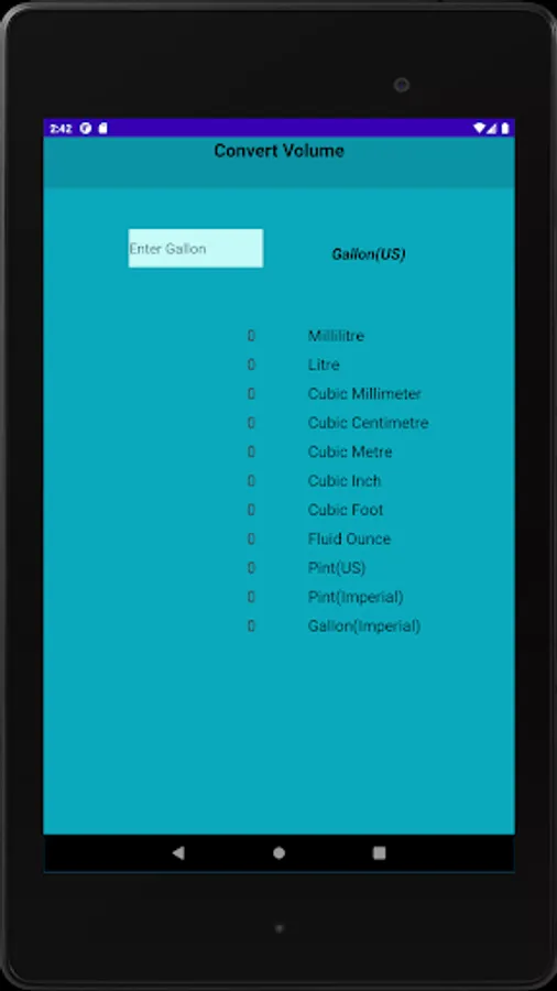 The User just needs to select the Unit to be Converted from the Main Screen and then input the number for converting from one Unit to another.