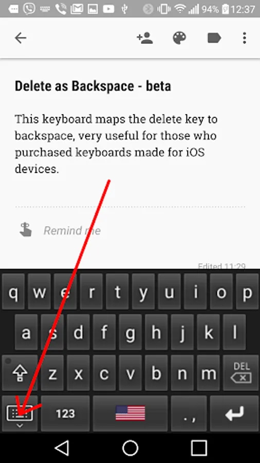 6) Go to the app where you wish to type and type on a text field, e.g. Google Keep