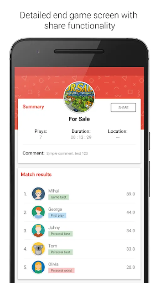 * Manage extra information like location, comments, rate each play or add separate notes for every player.