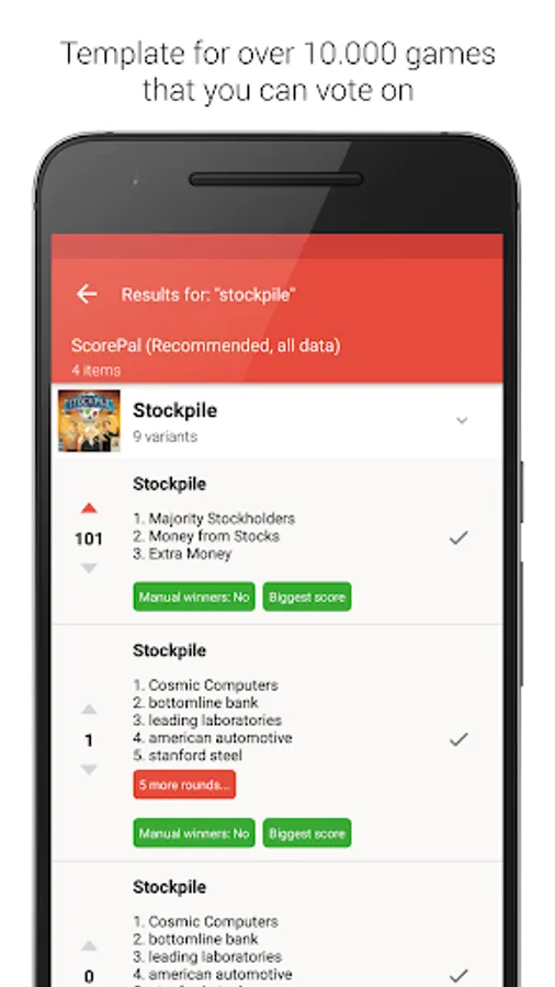 * Predefined templates for over 10.000 games, with the ability to view and vote those created by other users of the app
