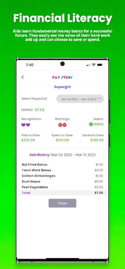 EARN REWARD - kids receive a payday, can be dollars or other types of rewards from you.
