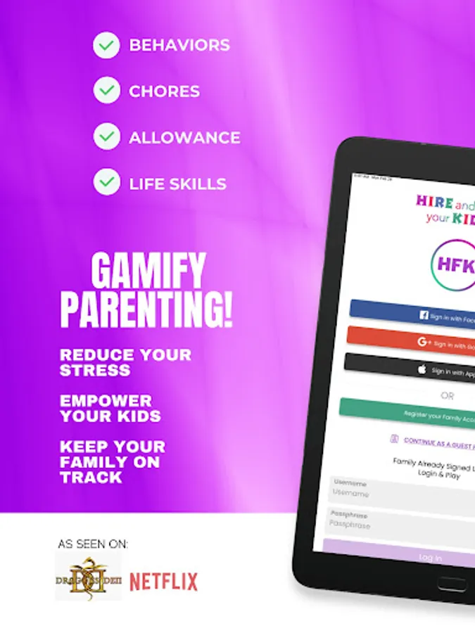 With 4 offers from the hit TV series Dragons’ Den, the Hire and Fire Your Kids app is like nothing else you can find today. It’s not another chore app, it’s a ONE OF A KIND PARENTING APP!
