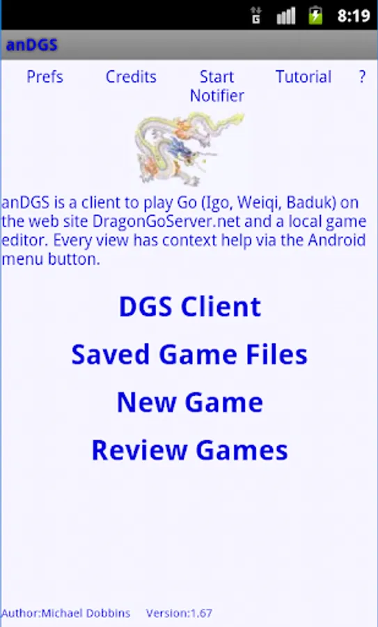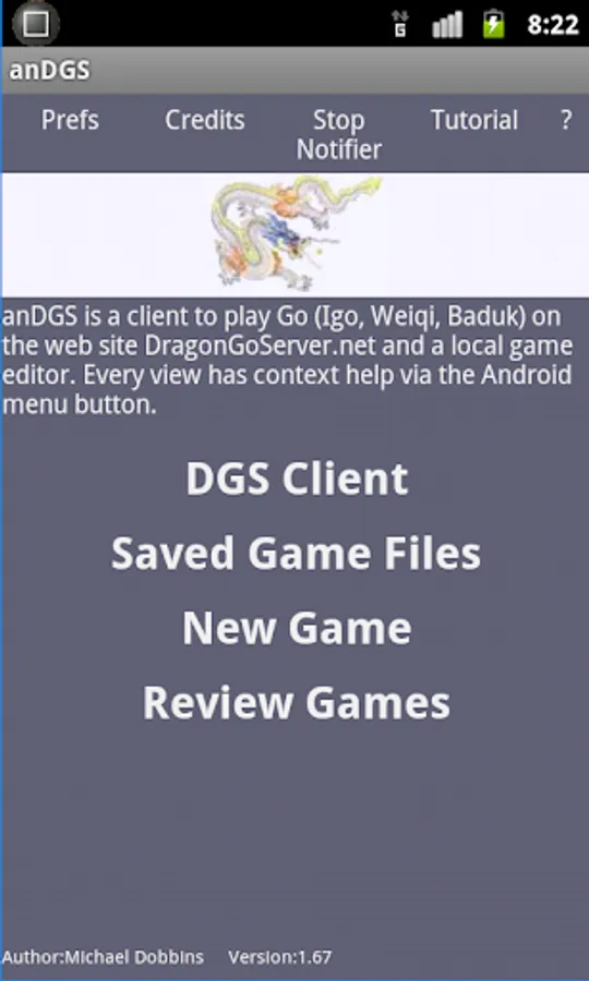 anDGS is a client to play Go (Igo, Weiqi, Baduk) with people worldwide on the Website DragonGoServer.net (DGS) which requires a free account on DGS.