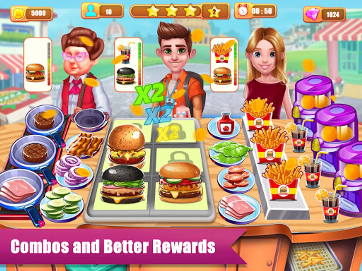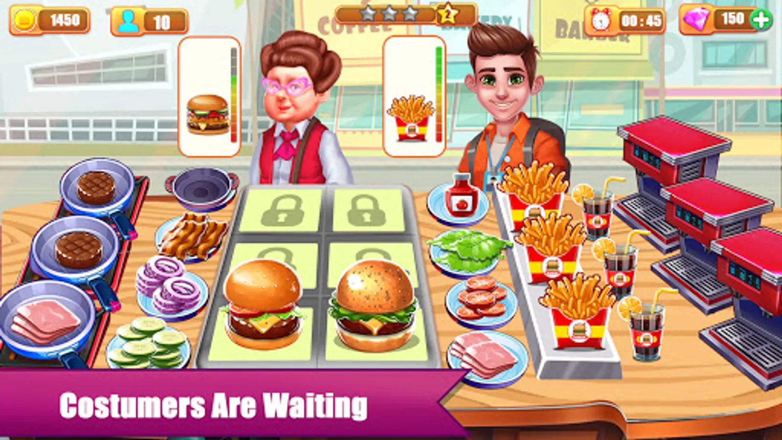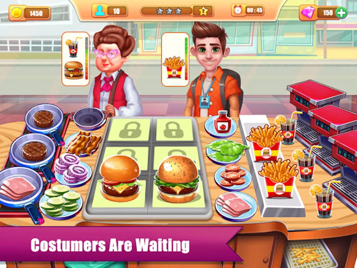 Make burgers and different organic materials like onions, cabbage, tomatoes, sauces, and more to make your yummiest burger healthy and attractive fun cook games. Serve drinks and fries to make it a complete combo to win the golden chef’s heart. Mix and match the materials to make one of the best burgers in this street fast food corner of food games. Work like a cooking craze chef of cooking food games. Upgrade chef restaurants cooking master to attract much more customers in 2021 city restaurant cooking games.